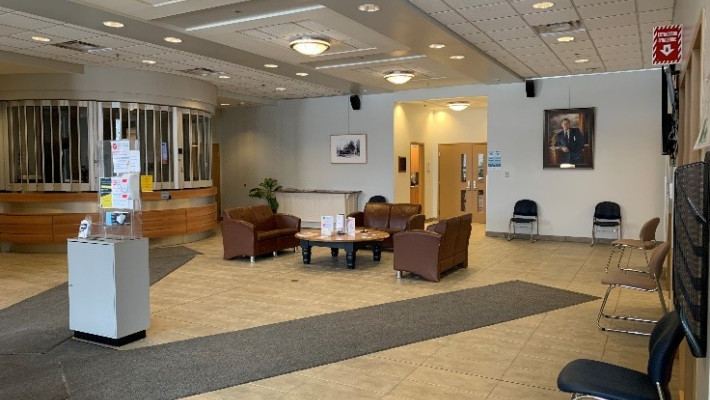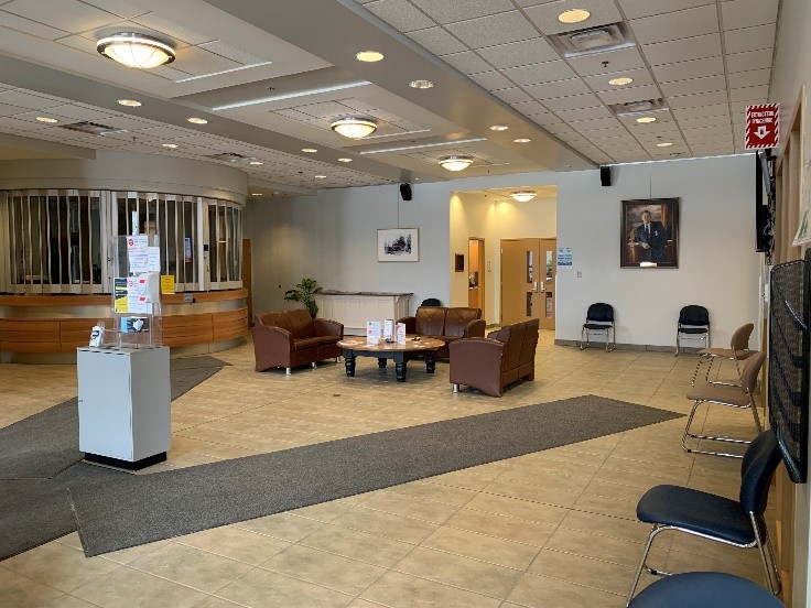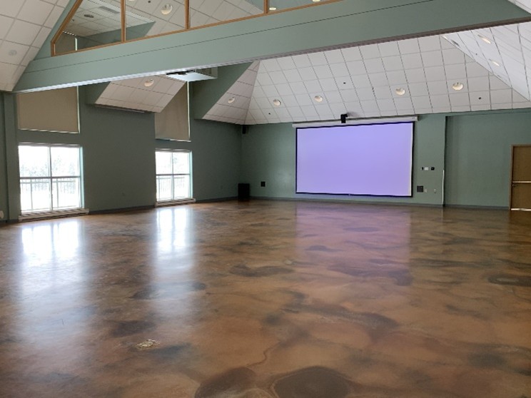 Grand espace bien éclairé, possède un système de crochets pour installer des cadres et un écran au mur pour visionner des diaporamas. Veuillez noter que durant la période de location, il se peut que d’autres personnes traversent le lobby afin de se joindre à leur propre groupe.