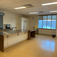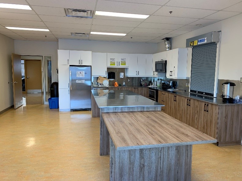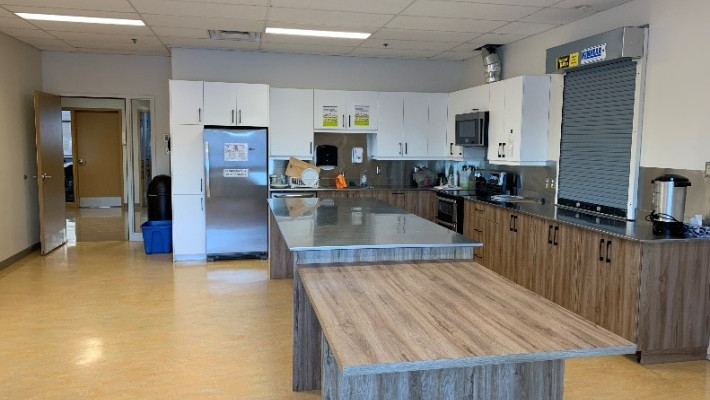 Complètement équipée et rénovée, elle dispose d’assez d’espace pour accommoder des cours de cuisine, des cuisines collectives, ou pour préparer de la nourriture pour les activités qui ont lieu dans d’autres salles du Centre. Une porte d’accès lie la salle Buchanan 2 à la Cuisine.