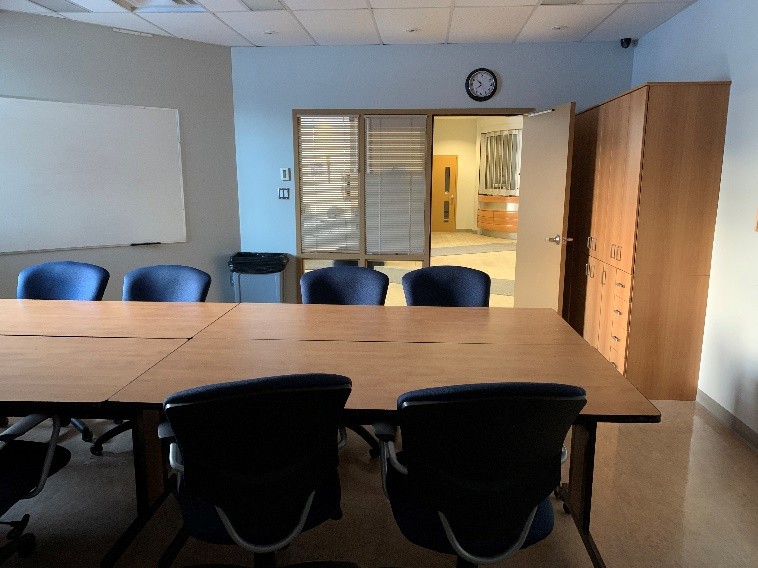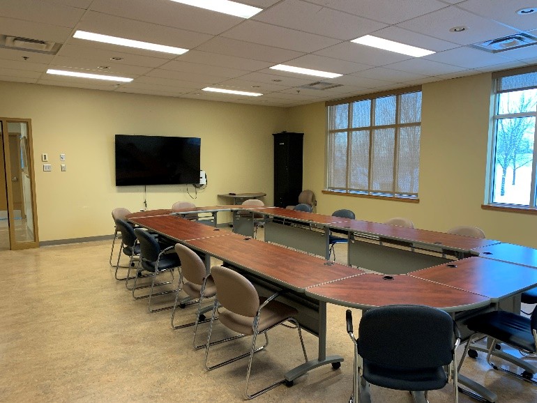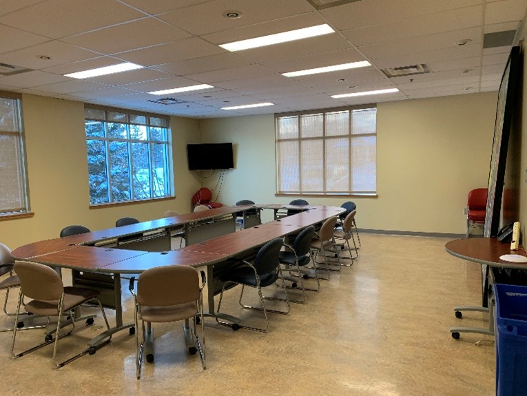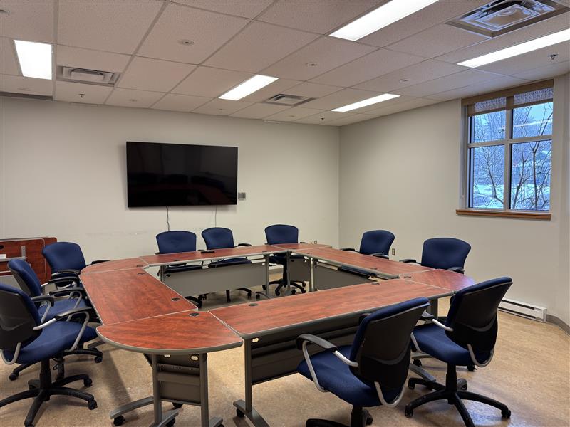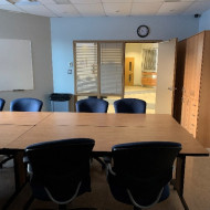 Cette salle offre toutes les commodités pour les réunions, petites activités ou cours. Elle est dotée d’un tableau blanc et d'une télé 75''.