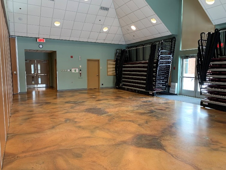 La grande salle se divise en deux pièces plus petites. Une petite cuisinette avec évier et frigo est attenante à la salle Buchanan